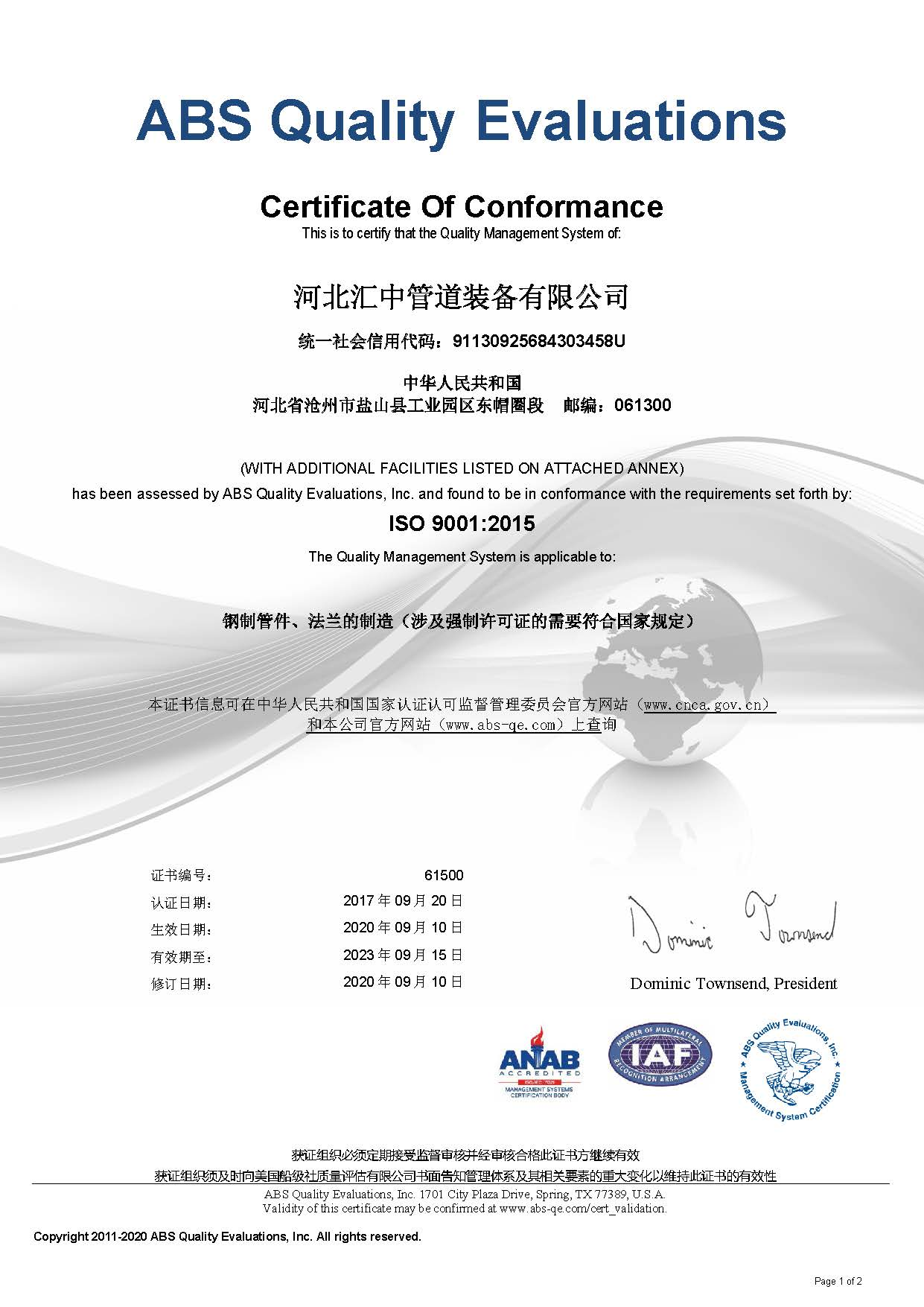 Our company has passed ABS ISO9001 / 14001 / 45001 Audit