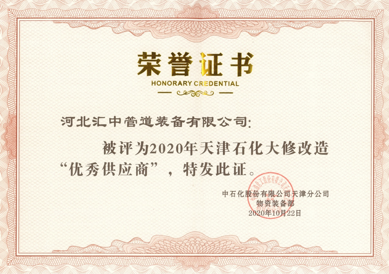 Our company was rated as "excellent supplier" of Sinopec Tianjin Branch